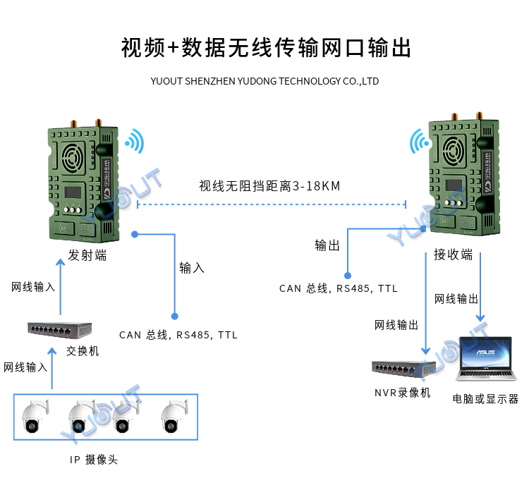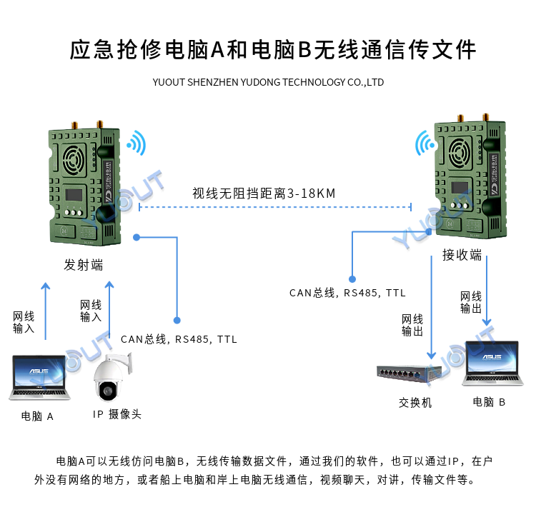 無線傳輸距離:非視距:300-900 米 地面視距:2-18 公里 |