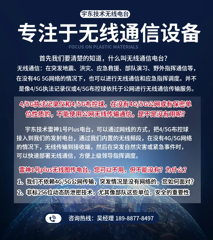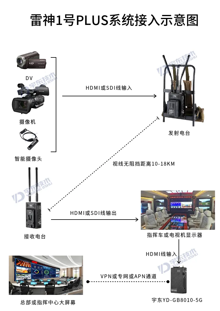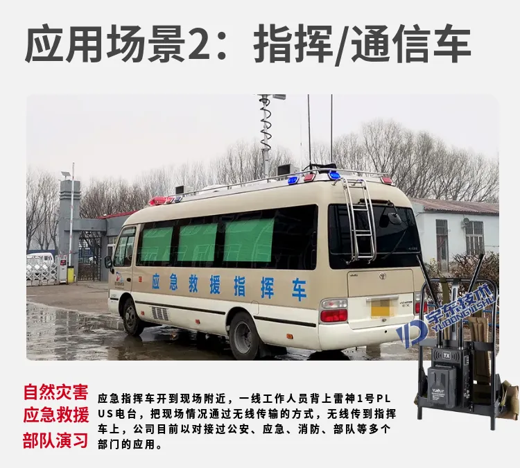 宇東技術雷神1號PLUS背負式高清無線圖傳電臺,是公司針對應急救援指揮、公安、反恐作戰(zhàn)、消防救援、邊防執(zhí)勤、海警海關巡檢、部隊拉練演習、森林消防等,在突發(fā)重大事件,斷網(wǎng)斷電,通信中斷的情況下,現(xiàn)場工作人員通過宇東雷神1號PLUS單兵圖傳電臺,把現(xiàn)場采集的數(shù)據(jù)實時無線傳輸?shù)街笓]車/臨時指揮部大屏幕,讓指揮部領導對現(xiàn)場情況一目了然,節(jié)省了到達現(xiàn)場的時間,可快速做緊急指揮調(diào)度,最大限度的減少突發(fā)事件帶來的各種損失。