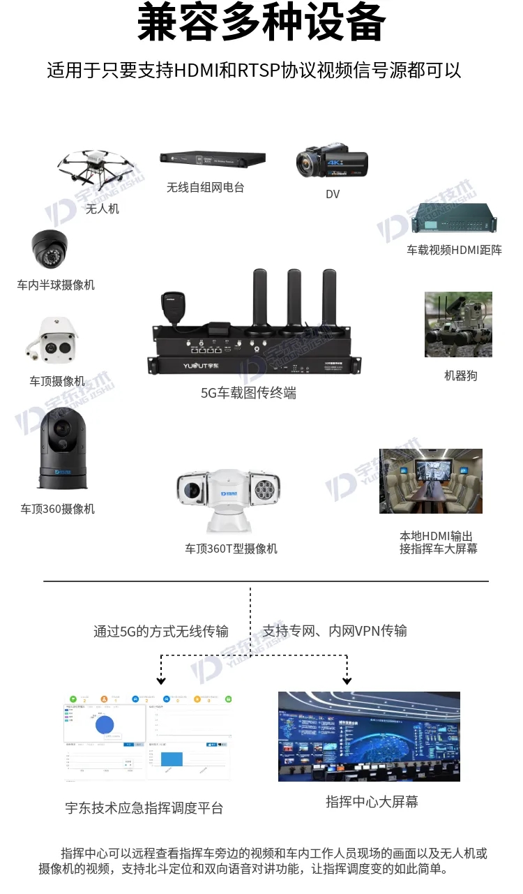 產品廣泛應用于交通、公安指揮車通信車、應急求援揮車通信車、消防揮車通信車、救護揮車通信車、城管揮車通信車、環衛等用車;5G車載圖傳終端是車載監控領域中的重要組成部分,它可以把前線工作人員現場的視頻和位置,以及車內的視頻無線傳輸到指揮中心,并支持雙向對講功能,提高行車安全和保障通信效率。