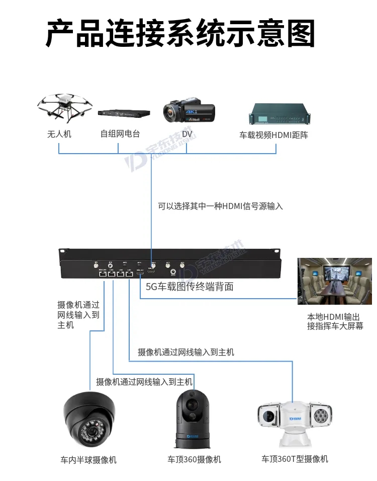 YD-GB8010-1U產品采用H.265超高壓縮算法,無線網絡自適應視頻編碼和傳輸技術,最大限度地有效利用傳輸帶寬,保證視頻傳輸的清晰度和流暢性,在無線網絡帶寬不是很穩定的環境下,傳輸效果遠超國內外同類產品。設備基于先進的H.265視頻編碼技術和5G無線信道捆綁傳輸技術開發的新一代產品。支持5G+4G網絡捆綁模式,可捆綁兩張不同運營商數據卡鏈路同時工作。解決了目前5G前期覆蓋盲點較多的問題,真正實現了5G/4G完美融合(5G+4G多卡為選配,標配為5G單卡)